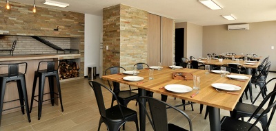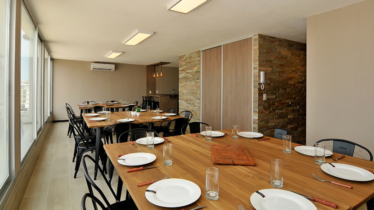 Al ingreso, amplio hall . Living comedor de 7,0 mts por 2.75 mts. Cocina integrada con placares sobre y bajo mesada, extractor de aire. Barra de apoyo.