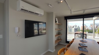 Living comedor con acceso a amplia terraza. Aire acondicionado.