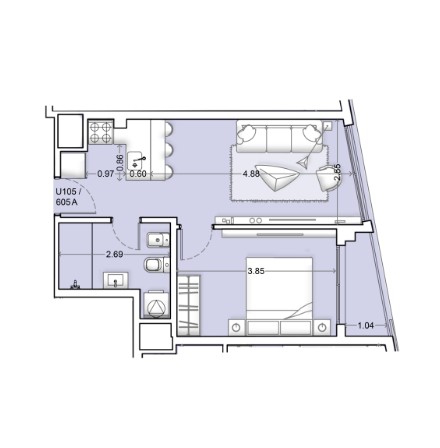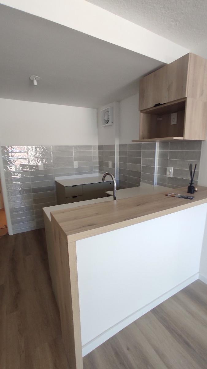 Orientado al frente en 5to piso. Living comedor con cocina integrada, con placares sobre y bajo mesada. Un dormitorio con acceso a terraza. Placard de guardado. Amplio baño y con calefón ya instalado.